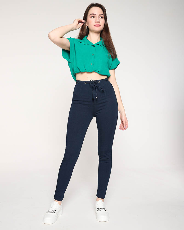 • Оригинальные узкие джинсы. Изготовлены из эластичной ткани. Модель с завышенной талией с увлекательным орнаментом на талии. Застегивается на пуговицу и молнию. Две пары карманов – сзади и спереди. ПРИМЕЧАНИЕ: Точность измерения (+/-) 1 см.