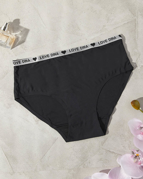 Трусики женские черные с декоративной полосой с надписями - Нижнее белье