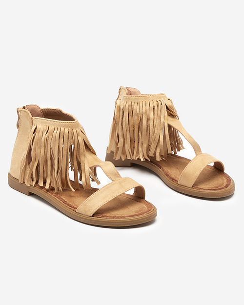 - Уникальные женские босоножки на плоской подошве, украшенной бахромой на щиколотке. Материал обуви – экологическая замша. Застегивается сзади на молнию. ВНИМАНИЕ: модель может иметь незначительное изменение цвета подошвы.