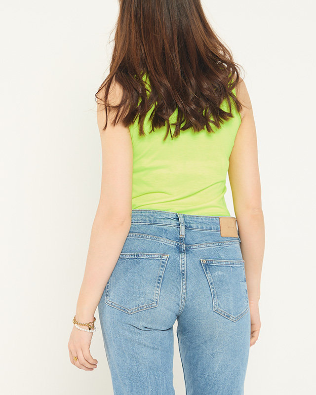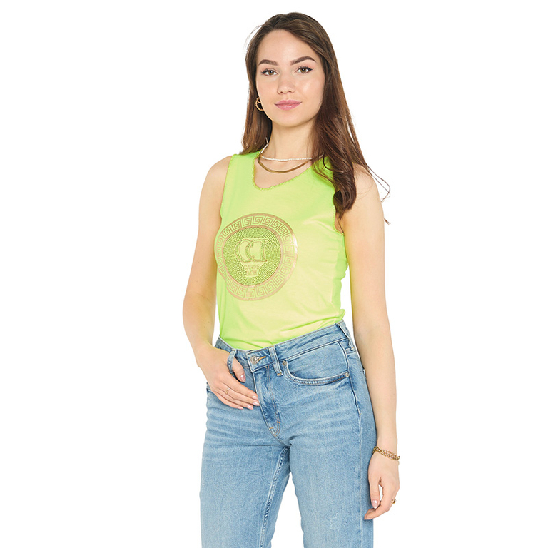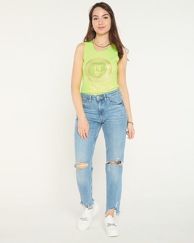 Неоновый желтый топ на бретелях с принтом и цирконами