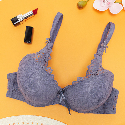 Бюстгальтер пуш-ап женский, светло-фиолетовый с кружевом - Нижнее белье