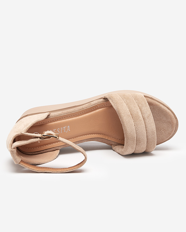 OUTLET Бежевые женские босоножки на танкетке Okita - Обувь