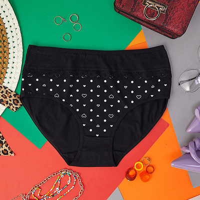 Черные хлопковые женские трусы с сердечками - Нижнее белье