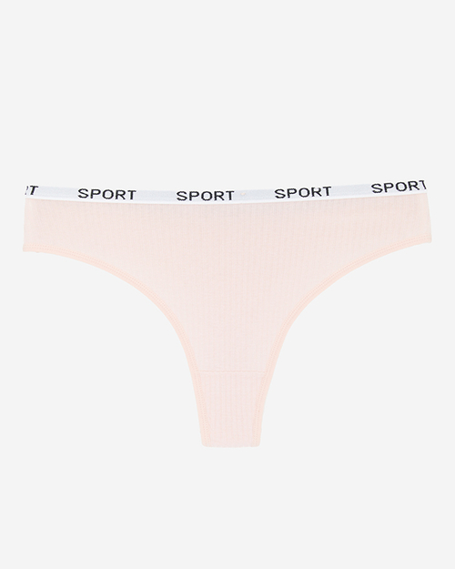 Светло-розовые женские трусики-стринги в рубчик - Нижнее белье