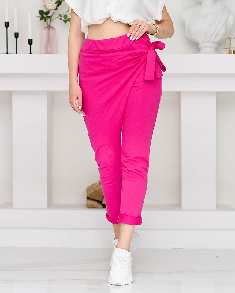 Женские спортивные штаны цвета фуксии со складкой и окантовкой - Одежда