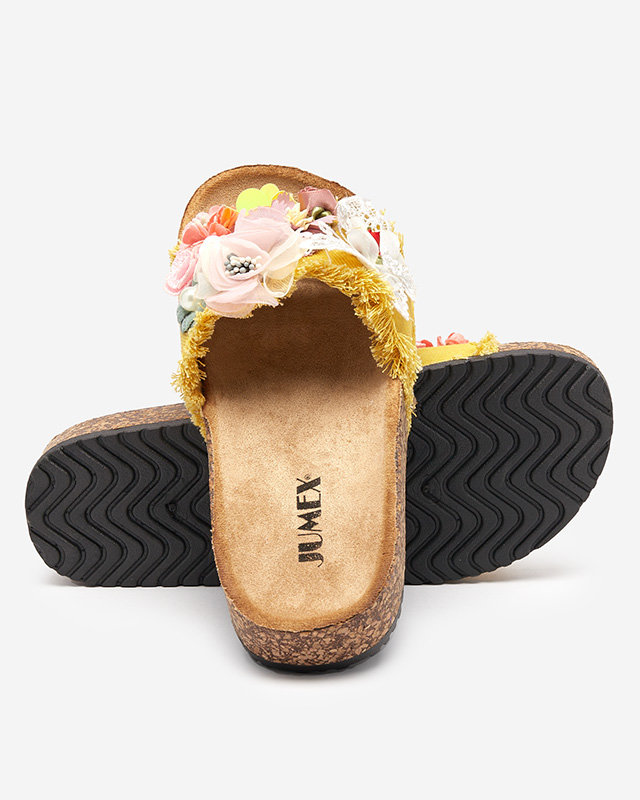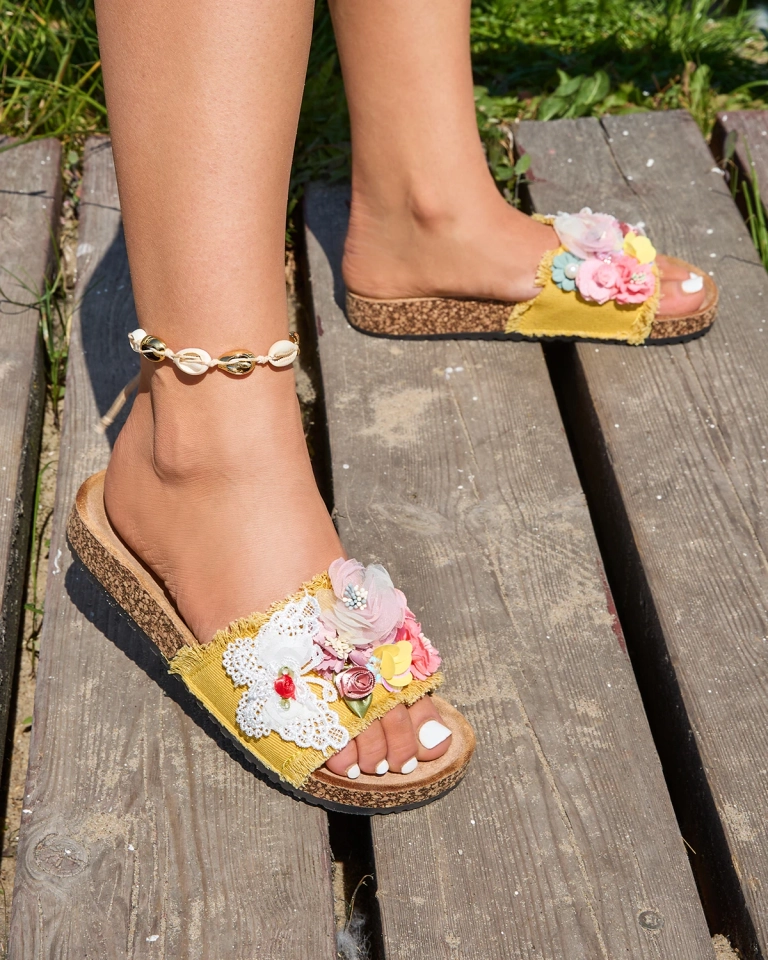 Желтые женские шлепанцы с украшением Ososi