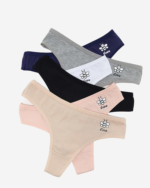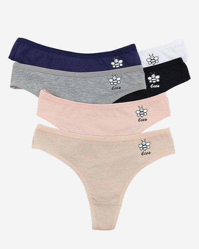 Хлопковые женские одноцветные стринги с принтом 6 шт./упак. - Нижнее белье
