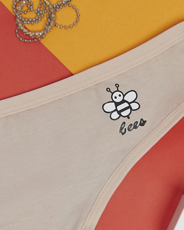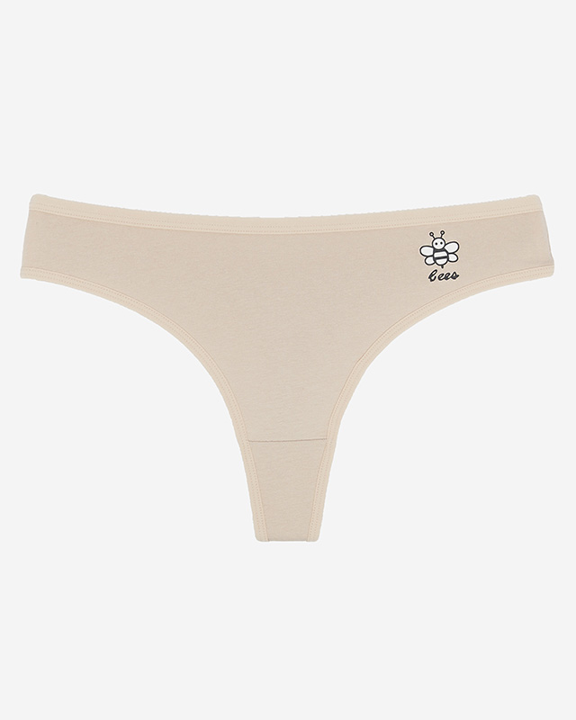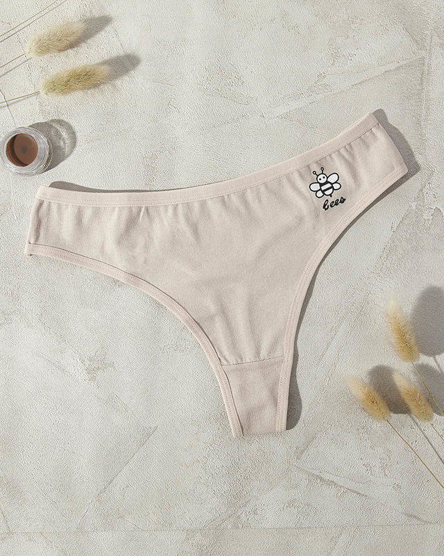 Бежевые хлопковые однотонные женские трусики с принтом - Нижнее белье