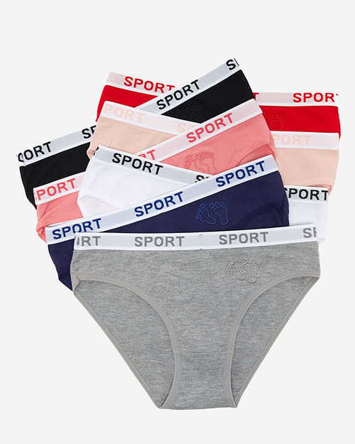 - Комплект удобных женских хлопчатобумажных однотонных трусов. Модель на талии с резинкой, украшенной надписями. Идеальное белье для тех, кто ценит удобство ношения! 7 шт. в упаковке ПРИМЕЧАНИЕ: Точность измерения (+/-) 1 см.