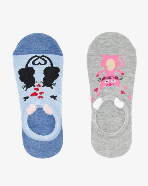 Носки женские темно-синего и серого цвета с принтом котят 2 шт./упак. - Нижнее белье