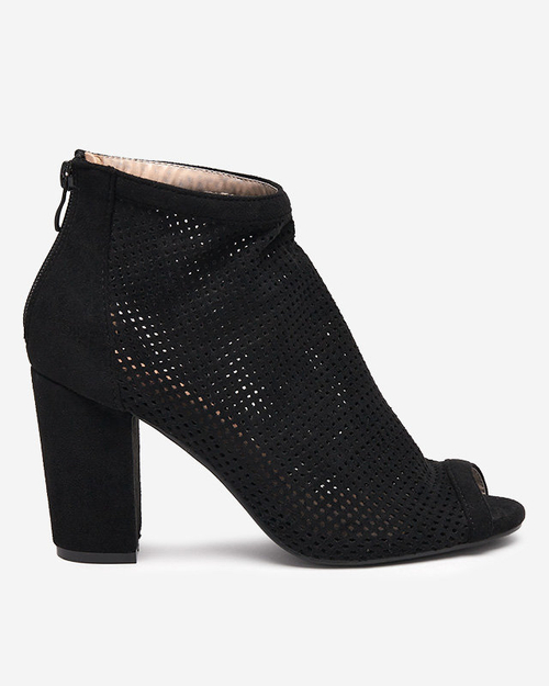 - Изысканные женские босоножки на шпильке из экологической замши. Модель застегивается сзади на молнию. Ажурный верх добавляет элегантности и стиля! ПРИМЕЧАНИЕ: один ботинок может быть немного шире другого.