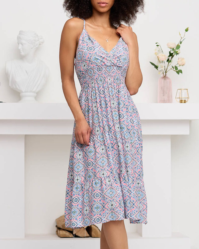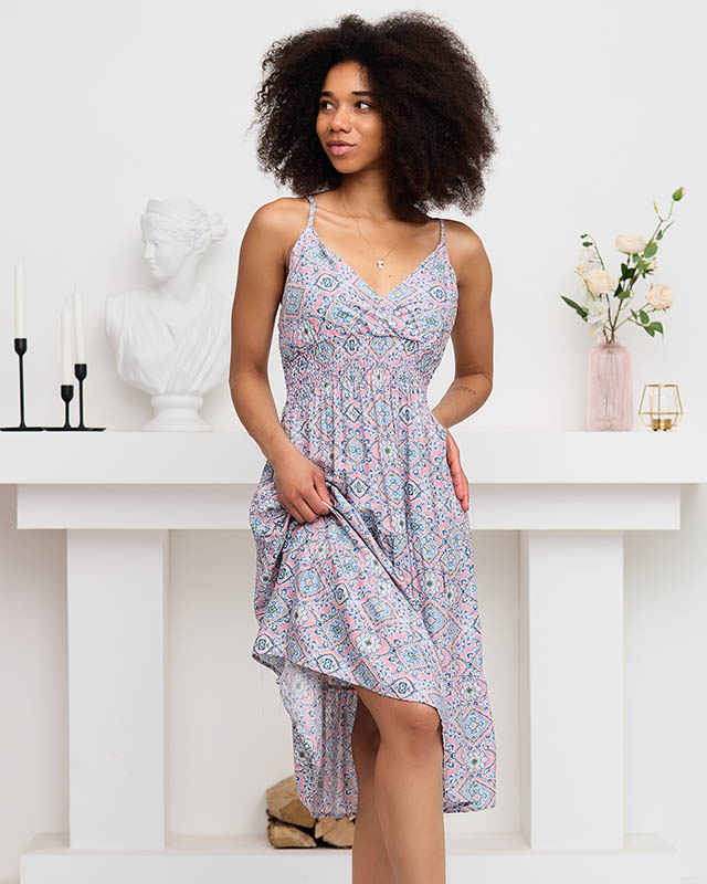 Розово-голубое женское платье с принтом