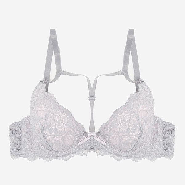 Серо-розовый кружевной бюстгальтер на бретелях - Нижнее белье