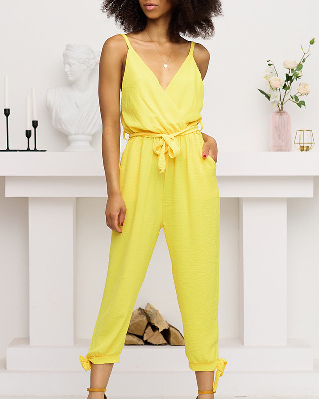 Желтый женский длинный комбинезон с галстуком - Одежда