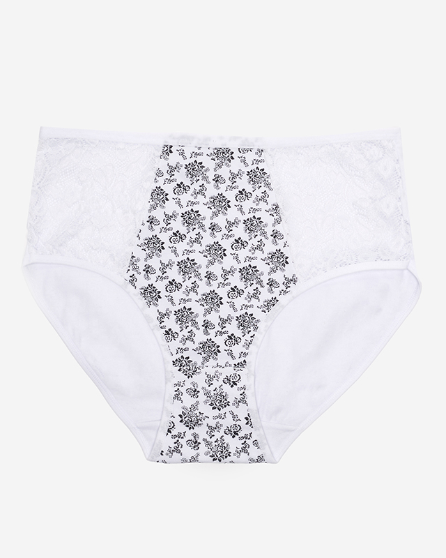 Женские белые трусики с цветочным узором на высокой талии. ПЛЮС РАЗМЕР - Нижнее белье
