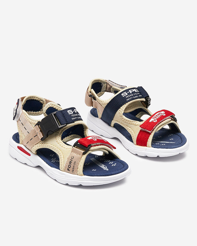 Бежевые и темно-синие босоножки для мальчика на липучке Эльбрусия - Обувь