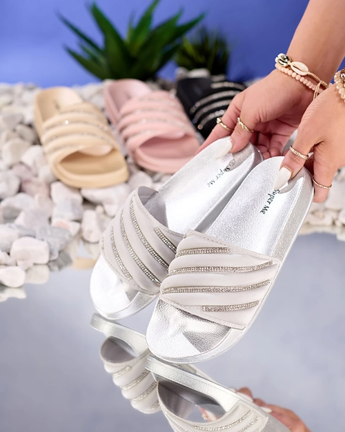 Серебряные женские тапочки с фианитами Mytaris - Обувь