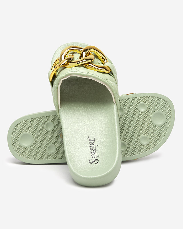 Женские зеленые стеганые тапочки с золотой цепочкой Eteris - Обувь