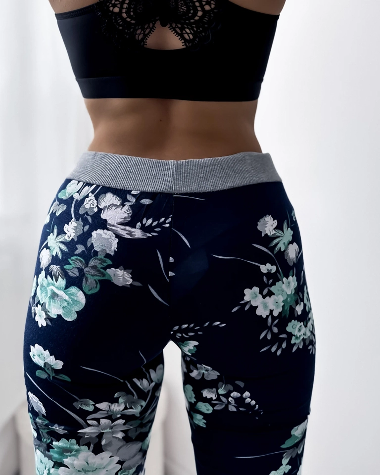 Женские шорты 3/4 темно-синие с зелеными цветами ПЛЮС РАЗМЕР - Одежда