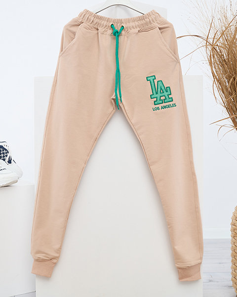 Женские бежевые спортивные штаны с цветной нашивкой - Одежда