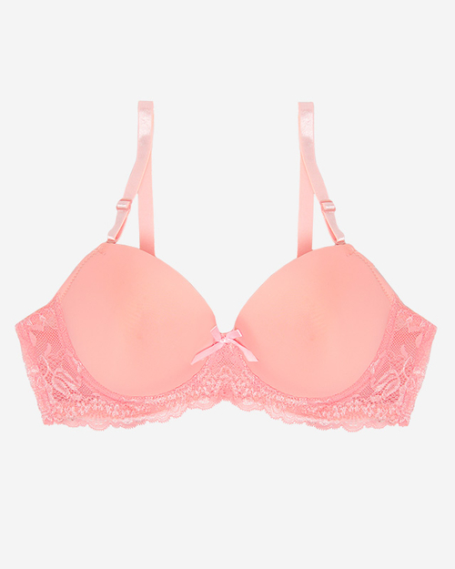 Светло-розовый однотонный гладкий женский бюстгальтер с кружевом - Нижнее белье