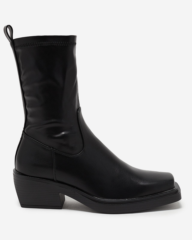 • Высокие женские сапоги из эко-кожи. Модель имеет низкую посадку, застежку на молнию сбоку и квадратный носок. Обувь деликатно утеплена. ЖЕНСКИЕ ВЫСОКИЕ ЧЕРНЫЕ САПОГИ SAFOG