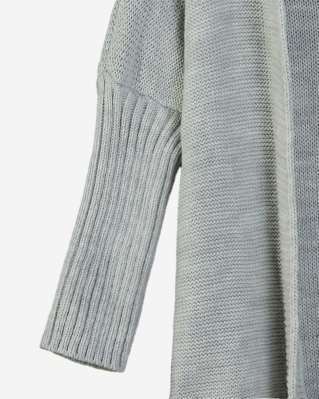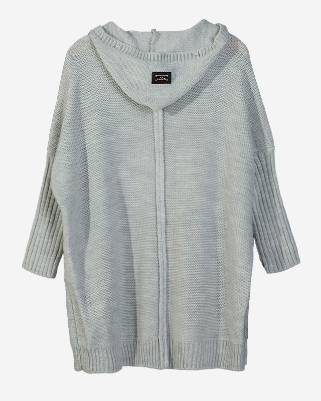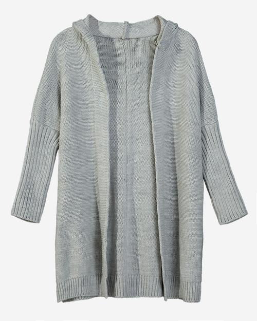 Женский длинный кардиган светло-серого цвета с капюшоном - Одежда