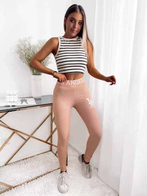 Светло-розовые леггинсы в рубчик с надписью
