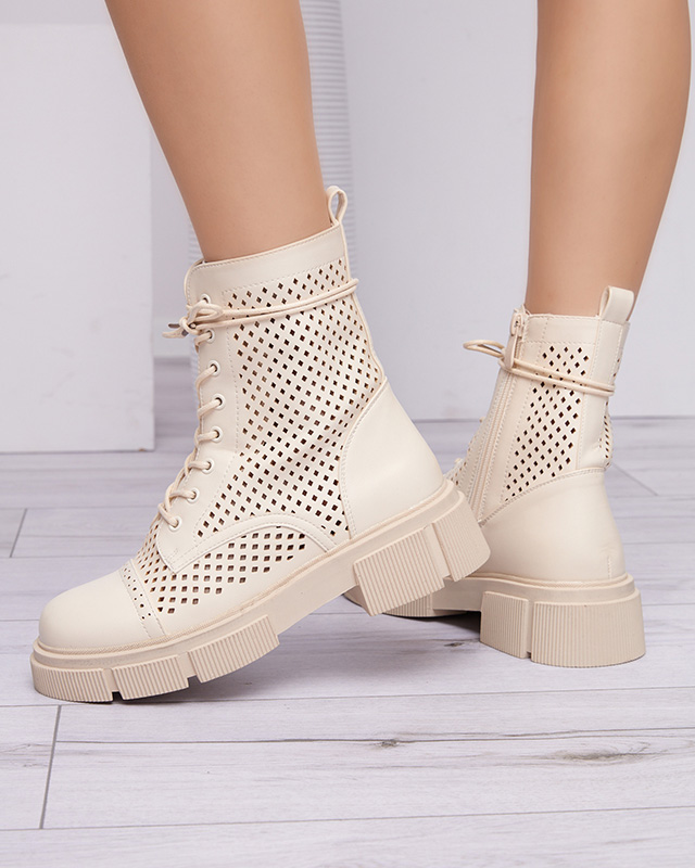 • Уникальные женские сапоги из экологической кожи с ажурной отделкой. Внутренняя часть обуви отделана эко-кожей. Ботинки шнуруются и застегиваются на молнию по бокам. Идеальная пара для образа в стиле бохо. БЕЖЕВАЯ ЖЕНСКАЯ ОБУВЬ НЕУТЕПЛЕНЫЕ БОТИНКИ ROLIKA
