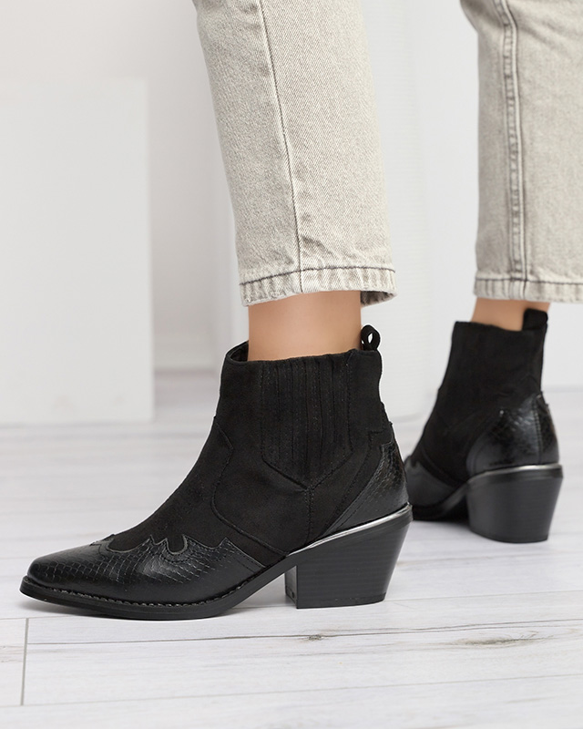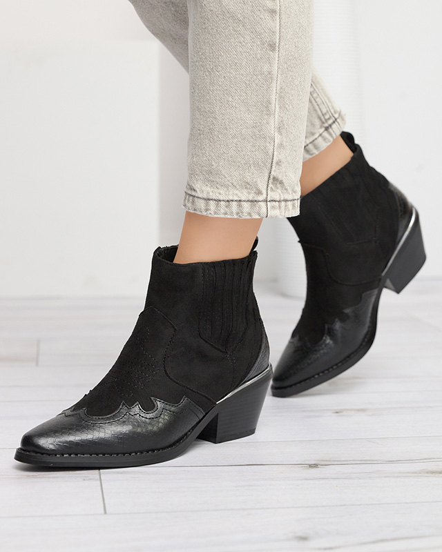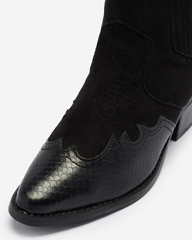 - Сенсационные ковбойские сапоги на низком каблуке. Выполнены в уникальном стиле. Верх выполнен из комбинации эко-кожи и экологической замши. Внутри деликатное утепление в виде меха. ЧЕРНЫЕ ЖЕНСКИЕ САПОГИ КОВБОЙСКИЕ ZIRRAS