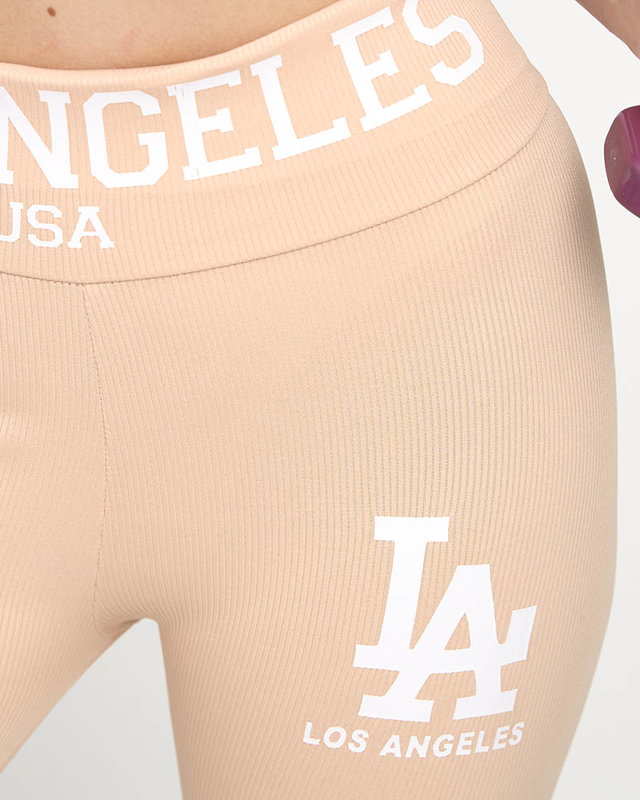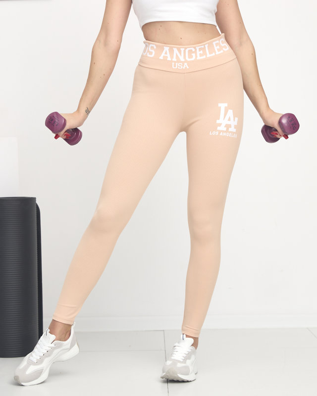 Пудрово-розовые леггинсы в рубчик с белой надписью