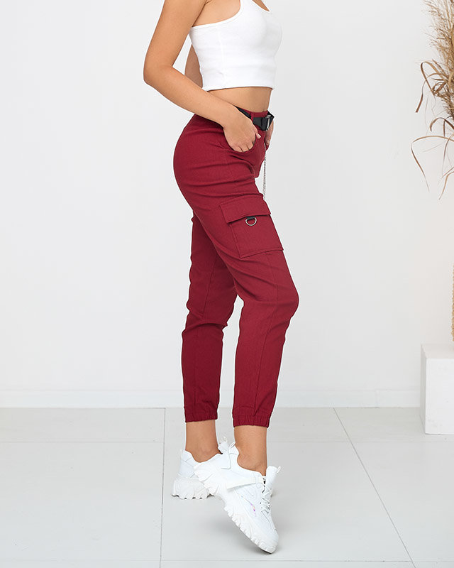 Бордовые утепленные брюки карго с карманами - Одежда