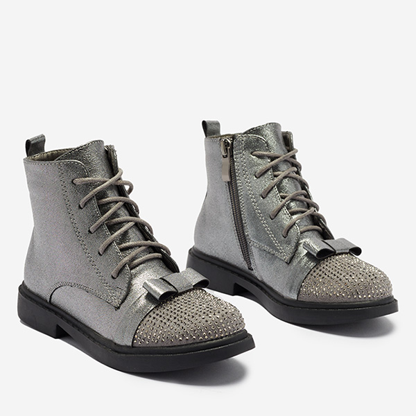 OUTLET Ботиночки для девочки с фианитами и бантиком из графита Kripo - Обувь