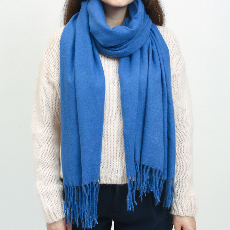 Кобальтовый большой теплый шарф с кистями - Аксессуары
