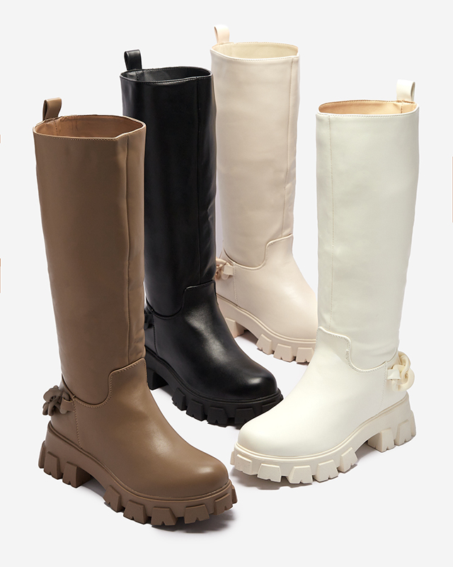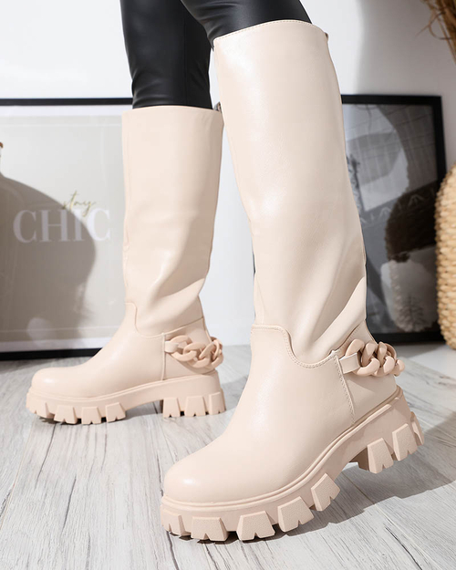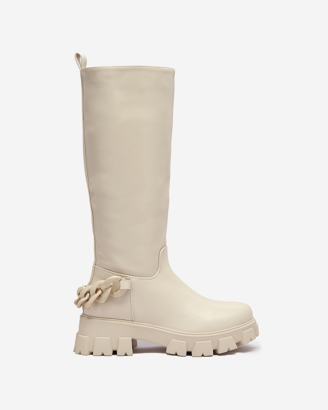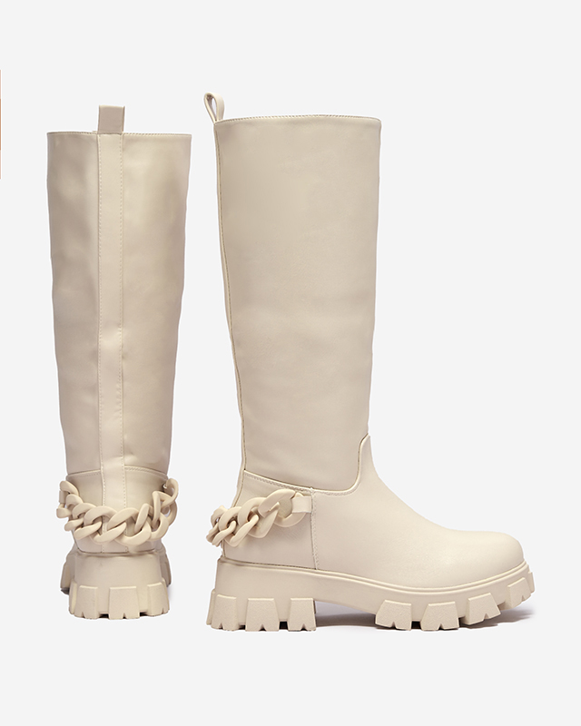 Кремовые женские сапоги-слипы с цепочкой Tera - Обувь