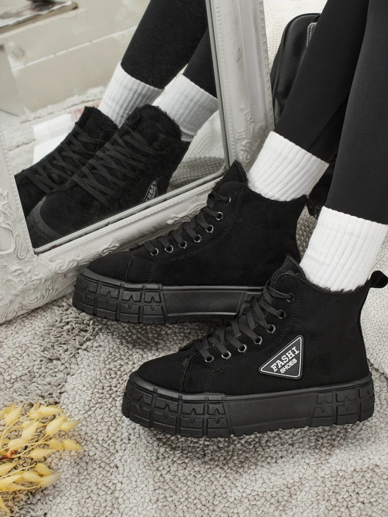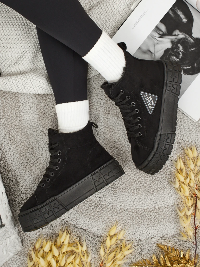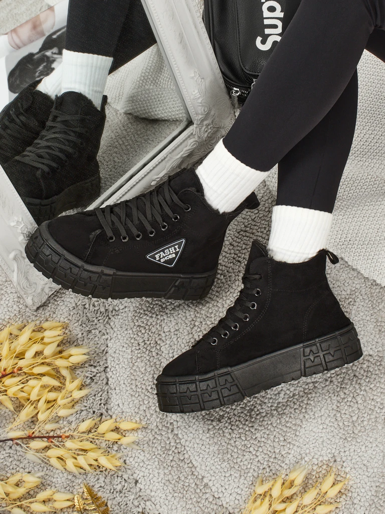 - Супер стильные женские ботинки на массивной платформе, выполненные из эко-замши. Модель на шнуровке, внутри утеплена мехом. Голенище украшено нашивкой с надписью. Идеальная пара на каждый день! ЧЕРНЫЕ УТЕПЛЕННЫЕ БОТИНКИ ZEFIRA