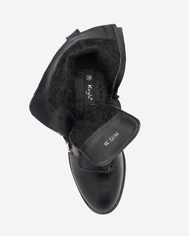• Мега стильные женские сапоги из экологической кожи. Верх украшен тиснением и пряжками, центр отделан мехом. Пара застегивается на молнию сбоку. Отличное дополнение к повседневным нарядам! ЧЕРНЫЕ ЖЕНСКИЕ ТУФЛИ LETTA