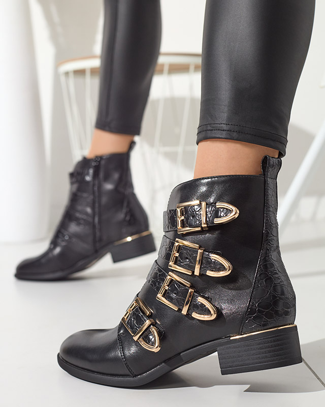 Женские сапоги с золотыми застежками и черным тиснением Letta-Footwear