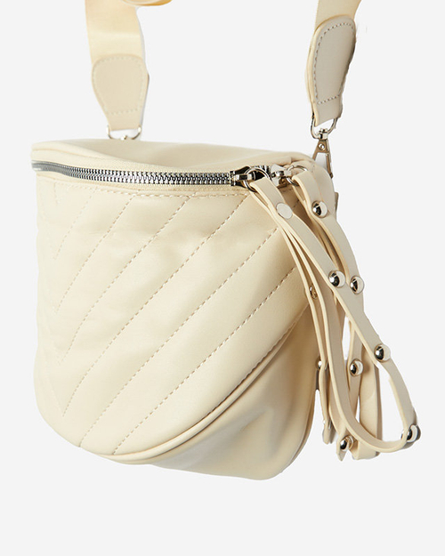 - Женская сумка-чехол из экокожи со стеганым украшением. Она имеет широкий регулируемый ремешок. Внутри имеется небольшой карман на молнии.
