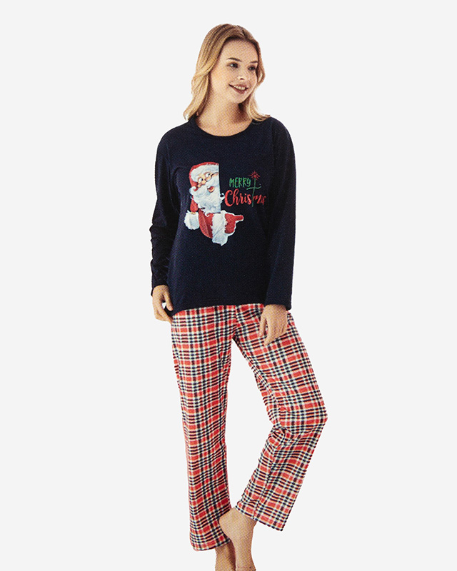 Темно-синяя женская пижама из двух частей с рождественским принтом - Одежда