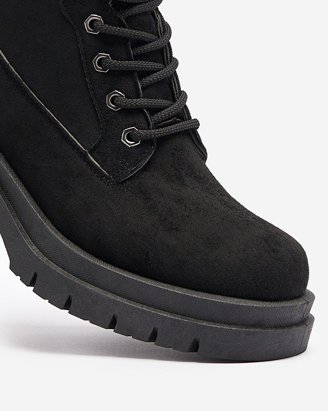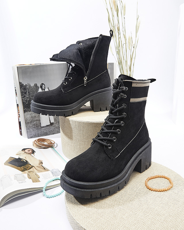• Аккуратные утепленные сапоги-ловушки на шпильке, выполненные из замшевой экологичной кожи. Внутренняя сторона выстлана мягким мехом. Модель на молнии, дополнительно оснащена шнурками. ЧЕРНЫЕ УТЕПЛЕННЫЕ САПОГИ ТРАППЕРЫ KOIDOO