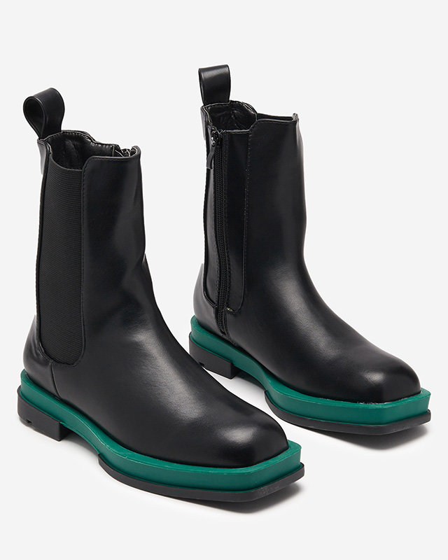 OUTLET Женские высокие ботинки с квадратным носком черно-зеленого цвета Litepi - Обувь
