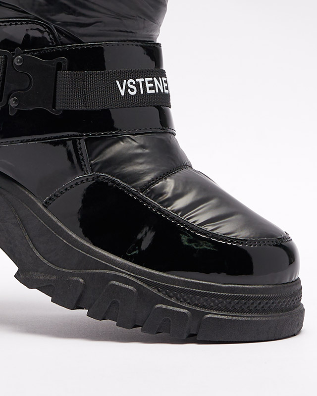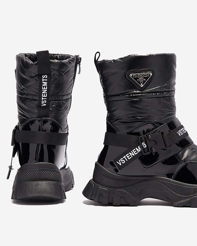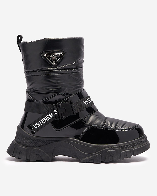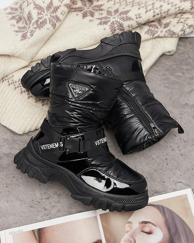 • Теплые женские сапоги-снегоступы с верхом из лакированной экокожи и искусственного материала a'la cerata. Внутренняя часть утеплена мехом, ботинки застегиваются на молнию. ЧЕРНЫЕ ЖЕНСКИЕ УТЕПЛЕННЫЕ СНЕГОСТУПЫ GENOVTY
