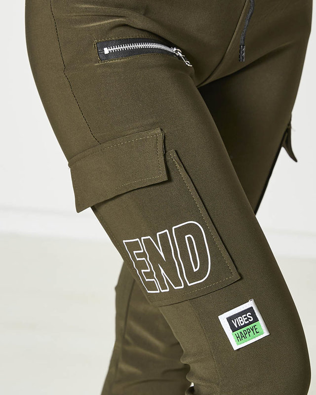 Женские боевые брюки с надписью темно-зеленого цвета- Одежда