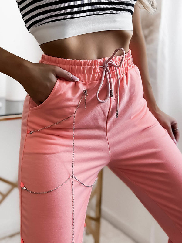 - Женские толстовки, выполненные из приятной ткани. Ноги отделаны резинкой, пояс имеет резинку и завязки, по бокам имеются карманы. Кроме того, сбоку имеется цепочка, которую можно повесить. ПРИМЕЧАНИЕ: Точность измерения (+/-) 1 см.