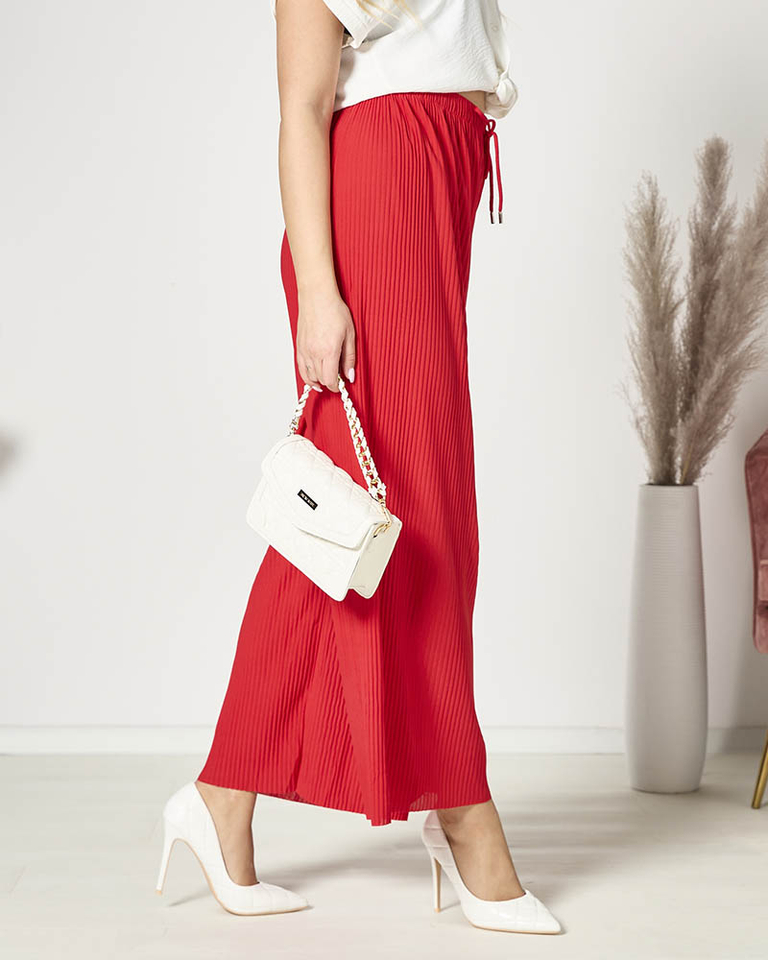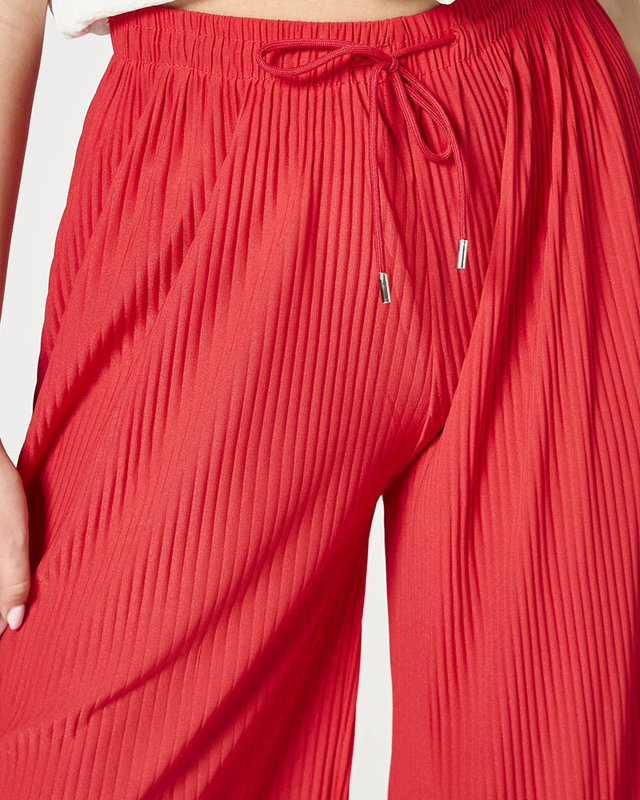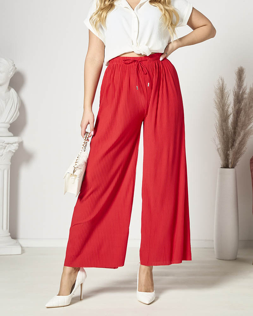 Женские широкие плиссированные брюки-палаццо красного цвета - Одежда