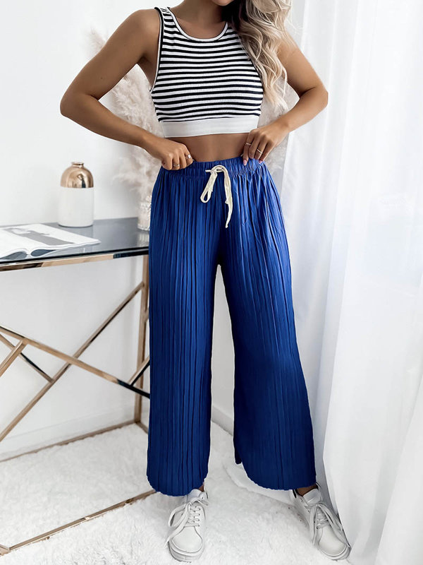- Легкие женские широкие брюки-палаццо, выполненные из плиссированной вискозной ткани. Изделие имеет широкий эластичный пояс и завязки, идеально подчеркивающие талию. Must have этого сезона! ПРИМЕЧАНИЕ: Точность измерения (+/-) 1 см.