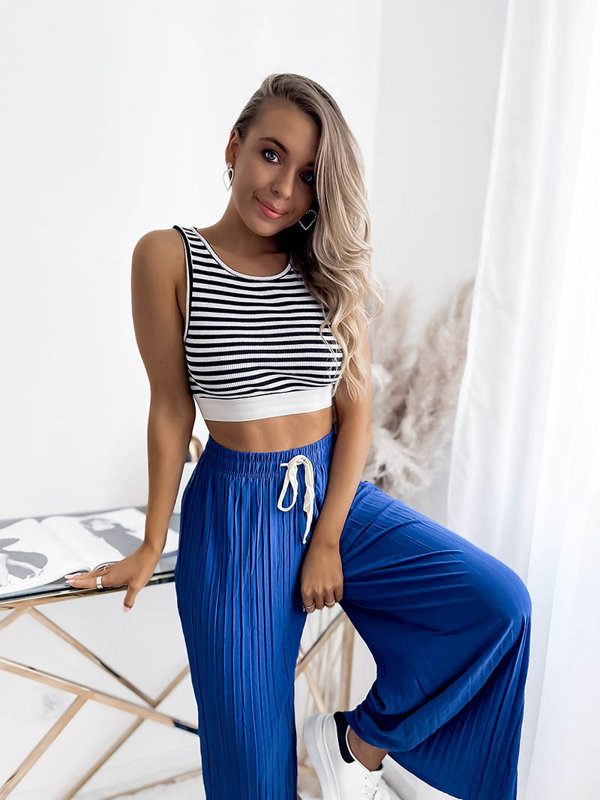 Темно-синие женские широкие плиссированные брюки-палаццо - Одежда