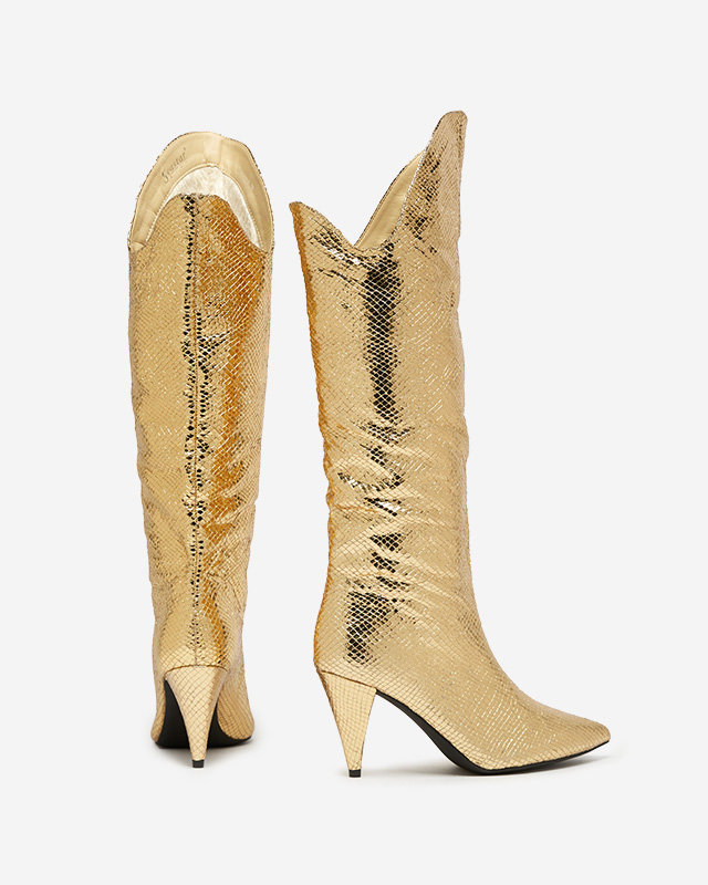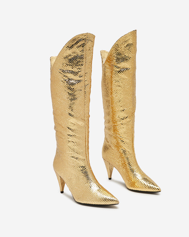 OUTLET Золотые женские сапоги на шпильке с тиснением Elivea- Footwear