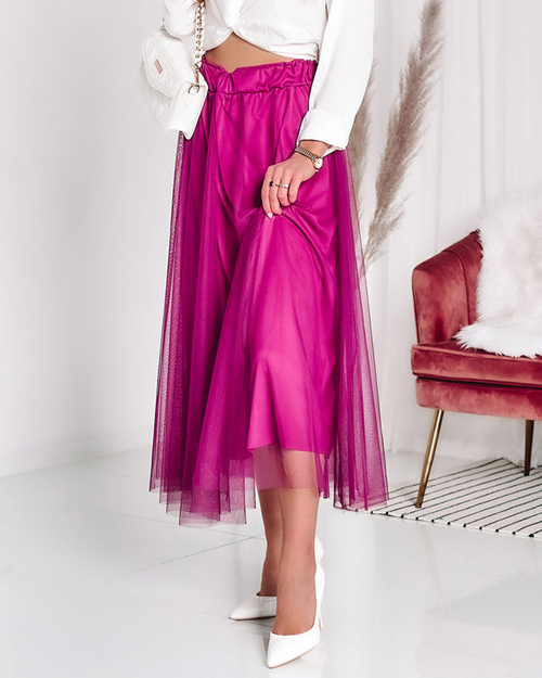 Женская двухслойная юбка-миди фиолетового цвета - Одежда